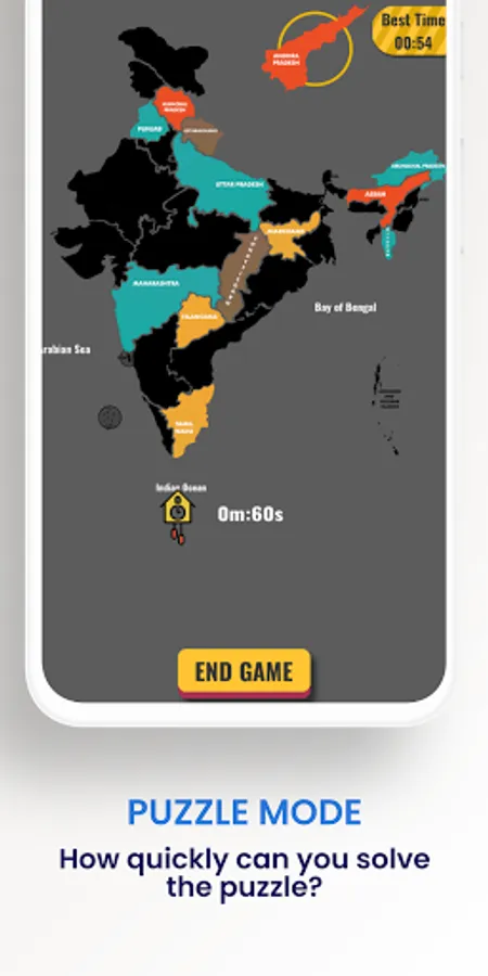 India Map Puzzle and Quiz game to learn general knowledge about India.