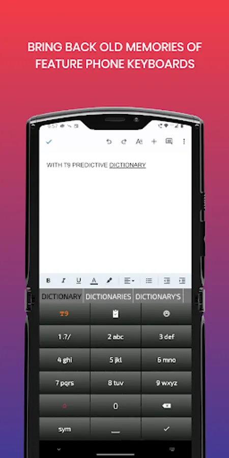 The Old T9 keyboard also features a predictive word suggestions or predictive text, just like on the old feature phones, so typing is fast and takes lesser clicks. The Old keyboard also learns new words that you type and are not part of the original dictionary and provides the word as suggestion the next time you hit the same sequence of keys.