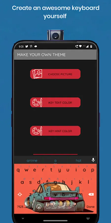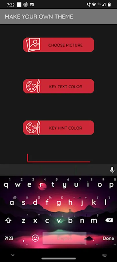 You can also choose from beautiful themes for your keyboard background. Or if you so desire you can create custom keyboard theme by picking pictures from your device to be the keyboard's background.