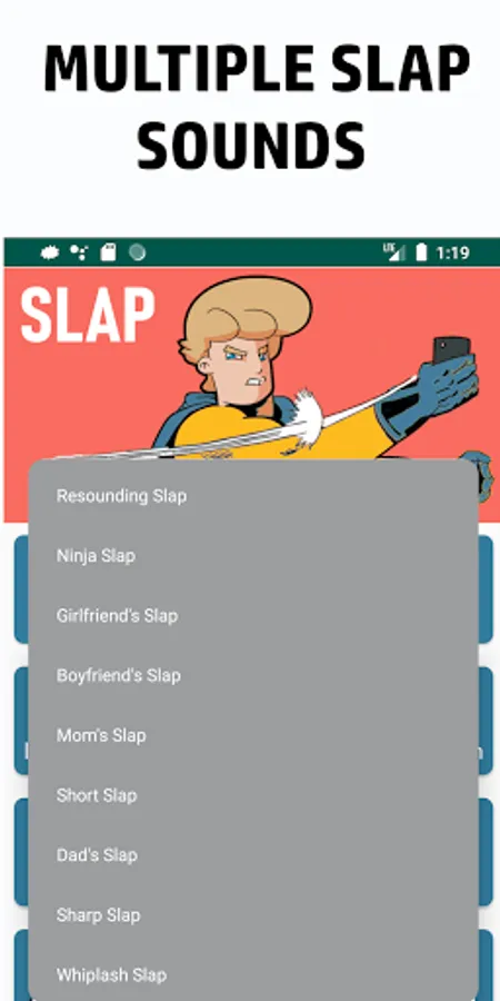 Mom's slap, Ninja slap. All the slap sounds are of high quality. Use it to prank your friends and family.