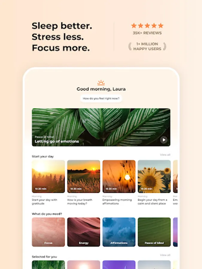 Sleep better. Stress less. Focus more. Meditation Moments is the meditation and mindfulness app for a peaceful state of mind. Use the meditations to release stress and deal with fear, anger and sadness. Choose from 200+ guided meditations, breathing exercises and relaxing music to sleep more, relax, reduce stress and amplify your focus, awareness and concentration.