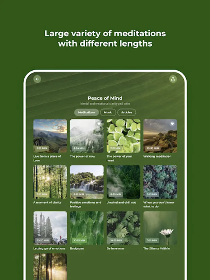 This app includes guided meditations for: