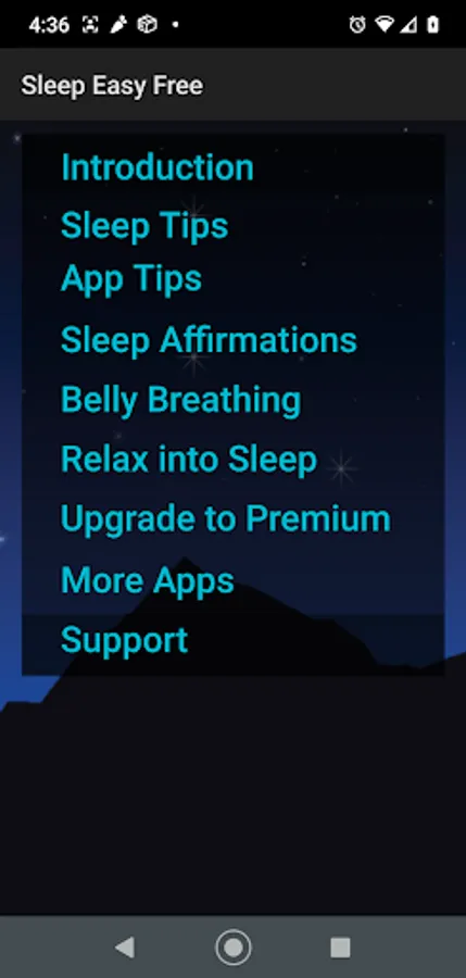 The Meditation Oasis® iSleep Easy Free app contains three guided meditations to help you fall asleep and sleep deeply. You can listen to the meditations with or without music or rain sounds.