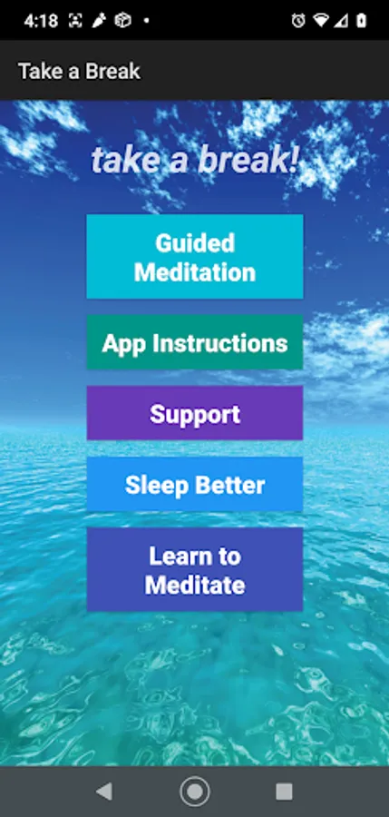 You can enjoy the deep relaxation, stress relief and benefits of meditation now without prior experience. Take a Break has been developed by Richard and Mary Maddux, creators of the popular Meditation Oasis podcast. Featuring two popular meditations from the podcast, the app gives you the option to listen with or without music.