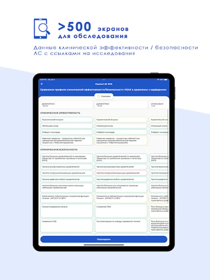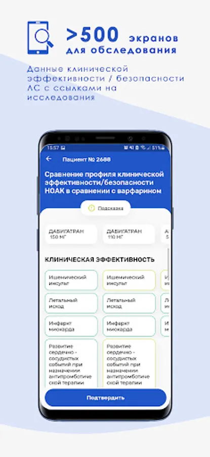 Clinical algorithms are presented within the framework of nosologies, the release of algorithms is carried out as they are developed, at the moment clinical algorithms are presented: "Arterial hypertension", "Ischemic heart disease", "Prescription of anticoagulants", "Tactics of actions in case of bleeding"