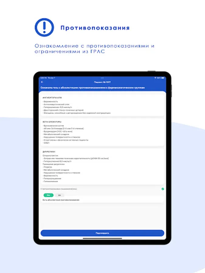 b. Providing contraindications to the appointment of drugs, restrictions on the part of the patient