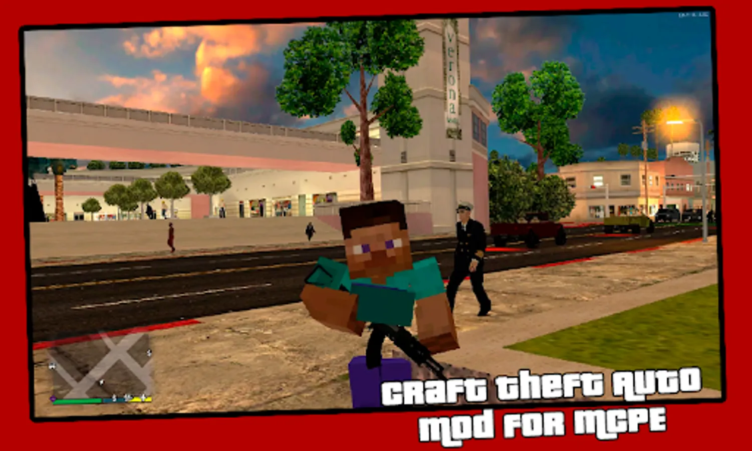 Every fan of the GTA series of games, that has become a real legend, should definitely download Craft Theft Auto Addon for MCPE to get new impressions from the already familiar game. Along with the app, you will get a cool map that will allow you to visit the most interesting locations. The starting point of your adventure journey will be the house of CJ, the main character of the GTA games. You will be able to visit the well-known areas of Los Santos. Go to the heart of the metropolis to visit the streets that have become popular thanks to the game. Absolutely everything in Mod Craft Theft Auto for MCPE corresponds to the original. Here, you will also find the well-known Los Santos Stadium, which is the venue for the largest racing competitions that have made many racers famous. Do not miss the opportunity to go to the business and gang areas of the metropolis, where you can meet with a dangerous gang of criminals.