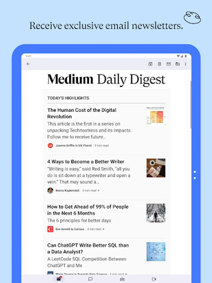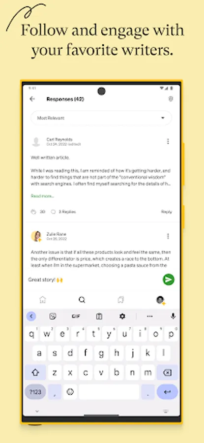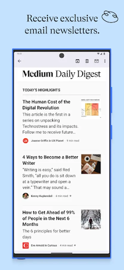 + Enjoy a minimal, distraction-free reading experience that keeps the focus on quality writing.