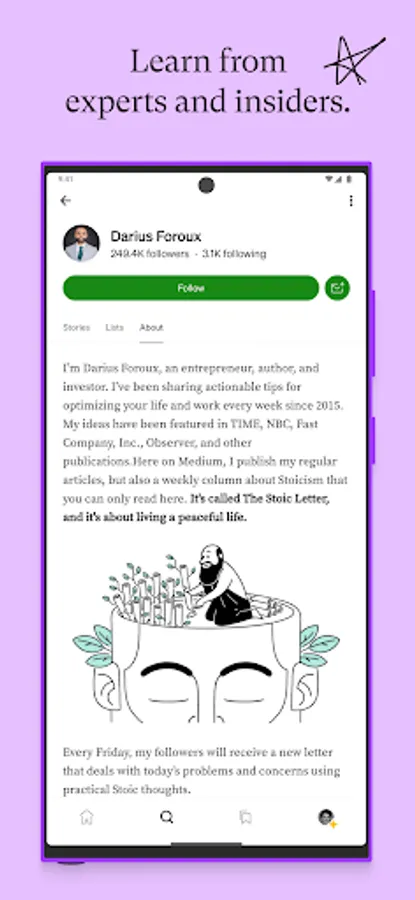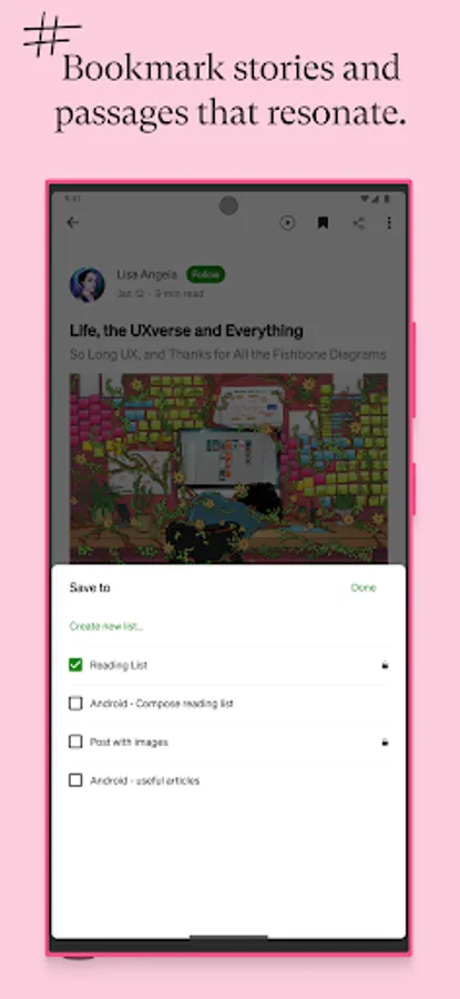+ Highlight passages, bookmark stories, and create lists to build your personal knowledge base.