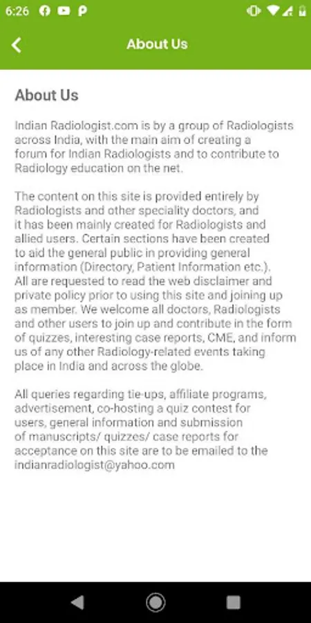 This app is the Launchpad to connect with various activities of IndianRadiologist.com, an online resource for free Radiology education. Get information and links of various conferences taking place across India – namely the BUZZ & the Masterclass Series run by Indianradiologist, updates that take place on the YouTube channel, with live links, and also information on the new Radbuzz magazine. You can use this app to link to these various options, as well as register for conferences. Interesting images, case of the week, and Live Updates during events, as well as happenings across India & the world of Radiology will be hosted here.