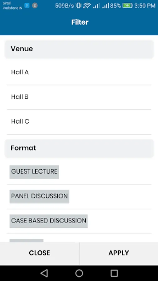 specialty, format. You can schedule sessions to attend, receive session reminders, access maps