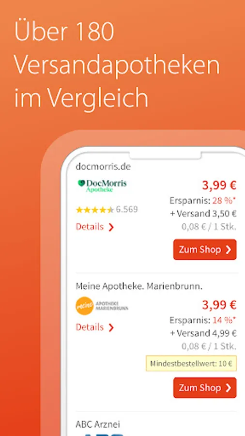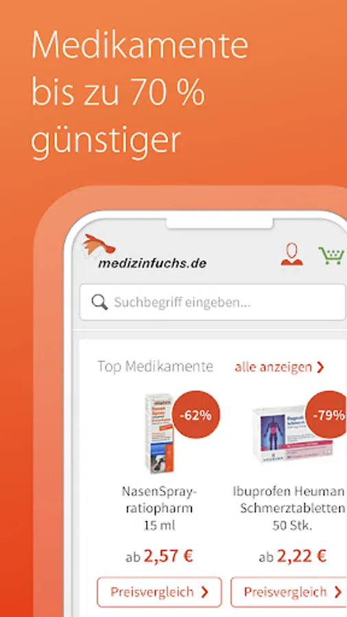 medizinfuchs.de price comparison app finds and compares the current prices and offers of medicines, care products, health products and natural remedies in over 200 mail order pharmacies and shops. Orders can be sent directly to the respective shipping pharmacy shop. Product information, reviews, generic suggestions and many additional features help with orientation.