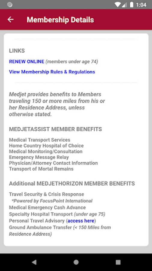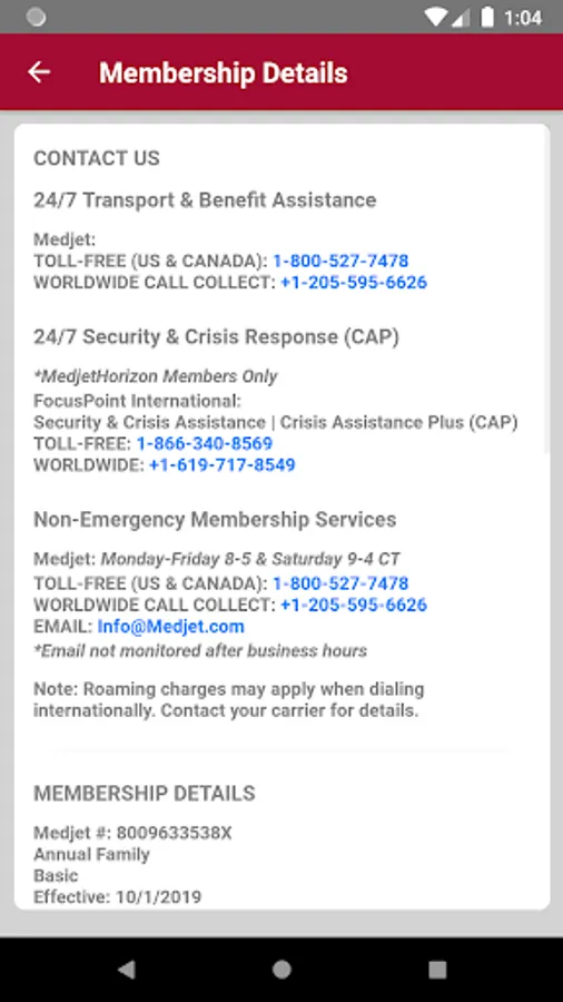 Download the App. Log in with your Medjet Membership Number and the Primary Member’s Date of Birth. With a tap of your screen, you will have quick access to:
