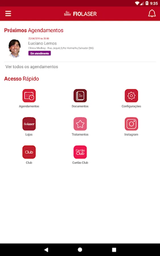 It allows the patient to have appointments and reminders of appointment times via push notifications, access to appointment history and health professionals who made their appointments. It also allows you to view your Club FioLaser card.