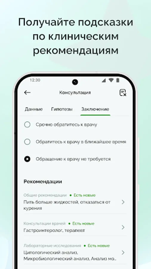 4. Automation of filling out the conclusion - use tips on diseases based on clinical recommendations. Speed up the completion of a consultation opinion with the help of templates and guides.