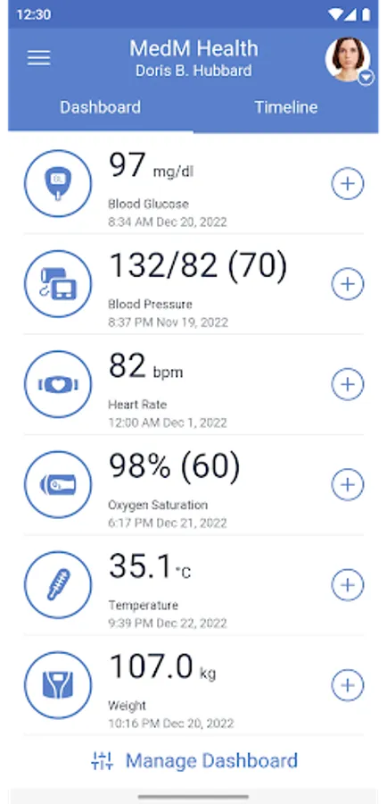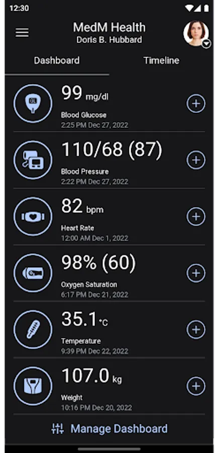 ▶ Remote access and data sharing: the MedM Cloud users can export and backup data to, as well as print out reports from the MedM Health portal (https://health.medm.com). It is also possible to share health data with loved ones, friends, and physicians. The cloud keeps the health journal safely stored and up-to-date, even if medical or fitness devices change.