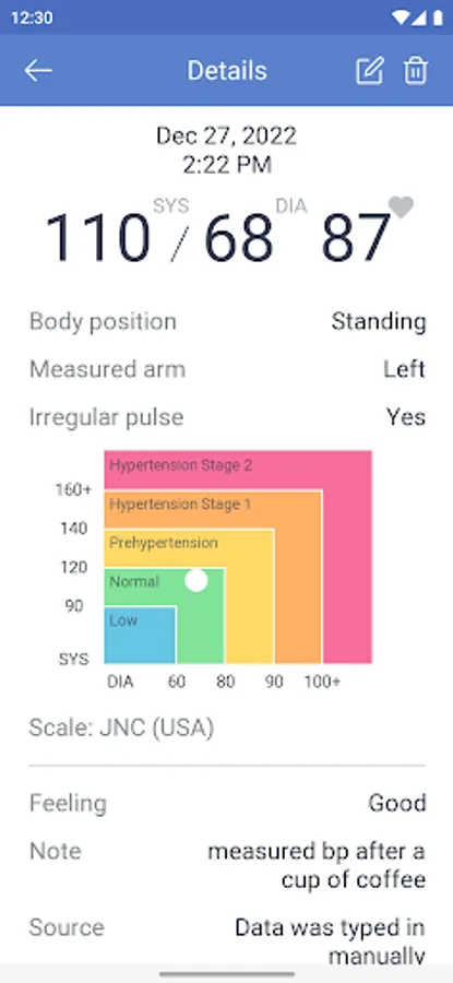 ▶ Easy entry: the app can be set to receive data from devices automatically (the settings screen appears at pairing); alternatively, it takes just a couple of taps to add a journal entry manually.