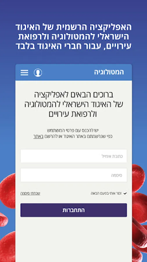 The official application of the Israeli Association of Hematology and Infusion Medicine, for members of the association only.