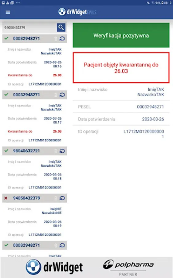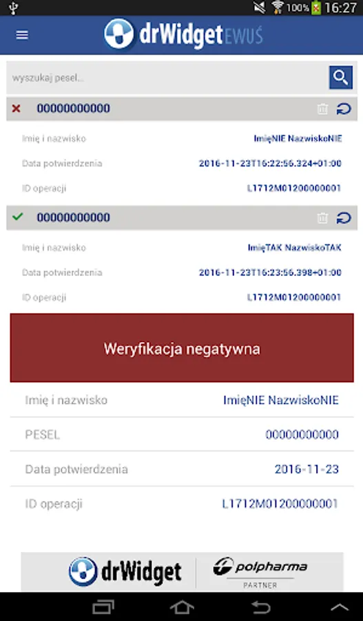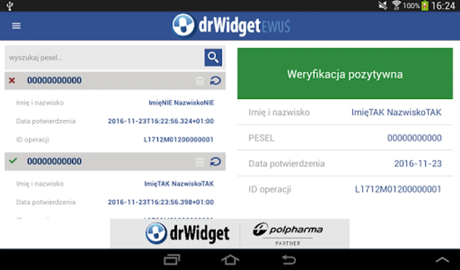 With this application drWidget eWUŚ can quickly check whether a patient has a right to benefits financed by the National Health Fund. Just that the doctor will give the patient's social security number, and after a while get access to interesting information.