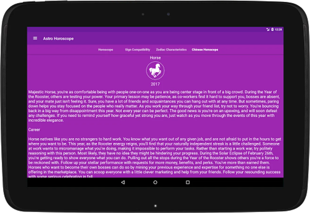 - Daily predictions for: love, romantic, flirt, health, finance, money, career, work, marriage, family.