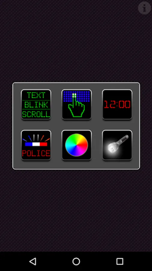 Your phone is LED display and you can write your text as LED light text, you can change text size, text color, background color, scroll text, scroll way, scroll speed, blink, blink speed, blink color.