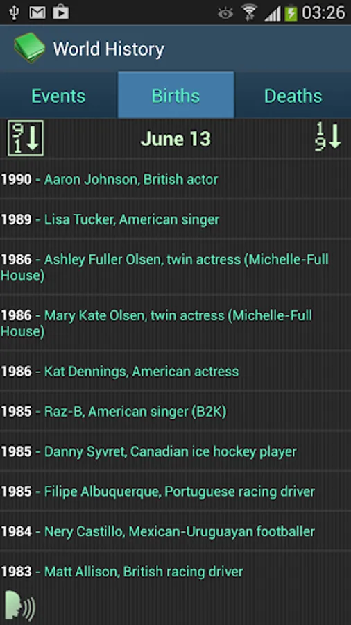 Daily historical facts, timeline, events, famous birthdays and deaths, world history, sports history, United States history, United Kingdom history, German history, French history, Italian history, Spanish history.