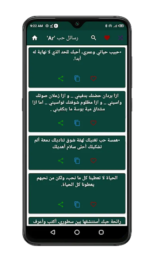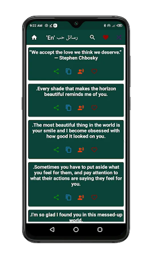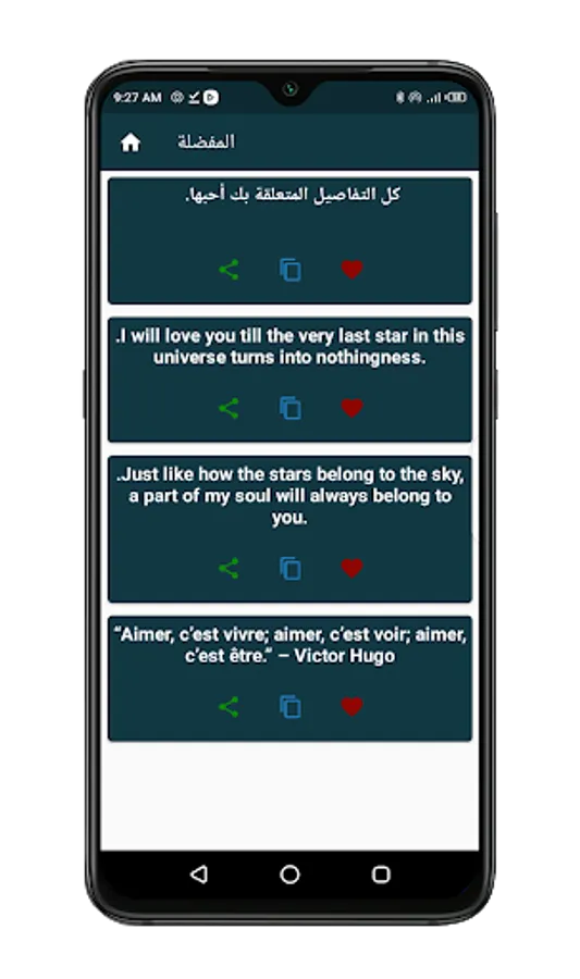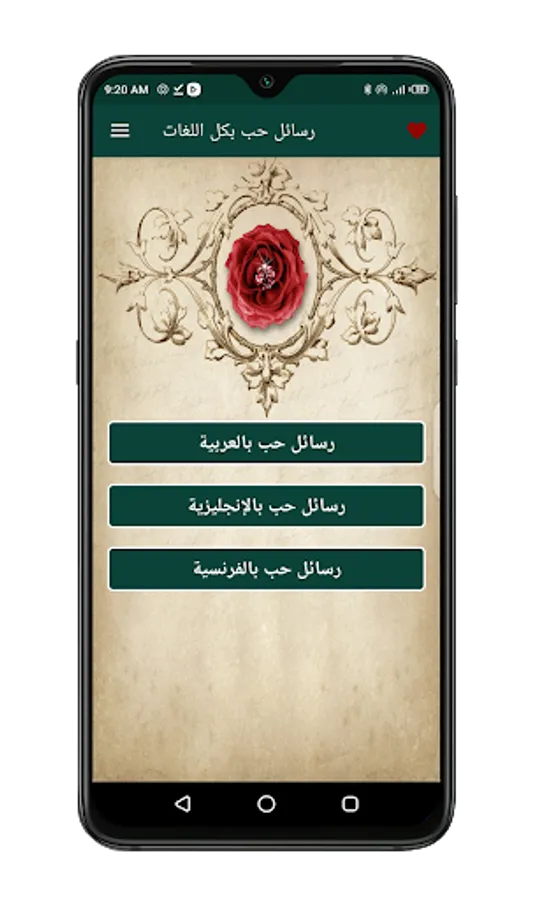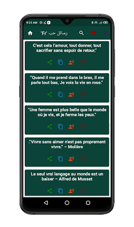 You can send messages in Arabic and also in English and French, and you can copy messages, hear messages or share messages directly to your beloved
