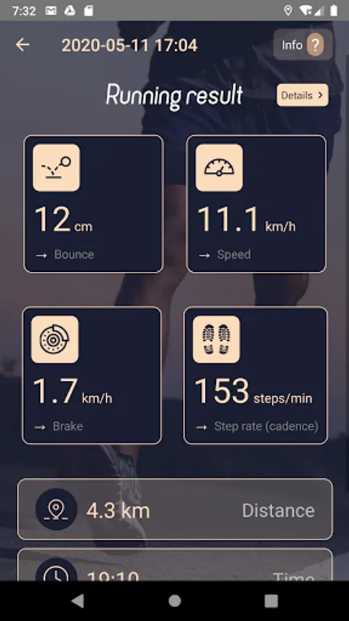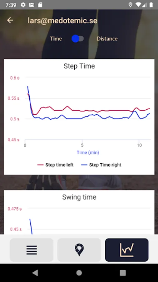 Your step is analyzed in detail immediately after training along with other measures such as distance, pace and much more. The results are displayed in a list, but also in graphs where you can study your training further. In the graph view, you can study how your movement pattern developed during the workout, based on either time or distance, depending on your interest.