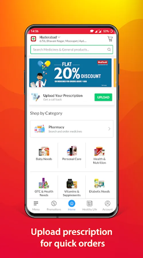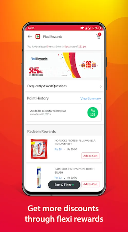 - Redeem FlexiRewards points - You can view available points and redeem your points for delivery or pick up through the MedPlus Mart App.