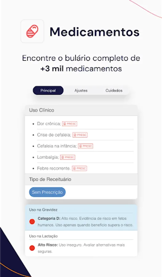 * Medications and Package List: quickly have all the information you need to prescribe different medications safely in your medical prescription: dosage, commercial names, therapeutic classes, mechanisms of action, clinical use, types of prescriptions, adverse effects, information on geriatric uses and pediatrics and contraindications. There are more than 2,000 specifications in the digital leaflet!