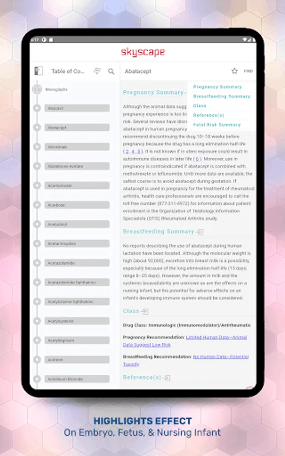 * Each monograph covers: generic name (in US); risk factors; pharmacologic class; pregnancy and breastfeeding recommendations; pregnancy, fetal risk and breastfeeding summaries; as well as updated references.