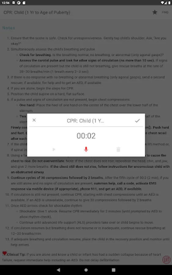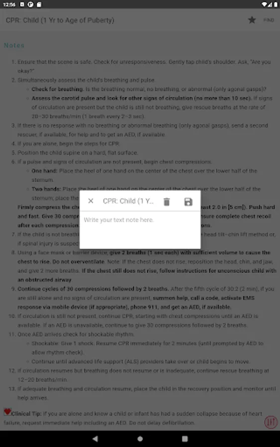 * PALS tab (Pediatric Advanced Life Support)