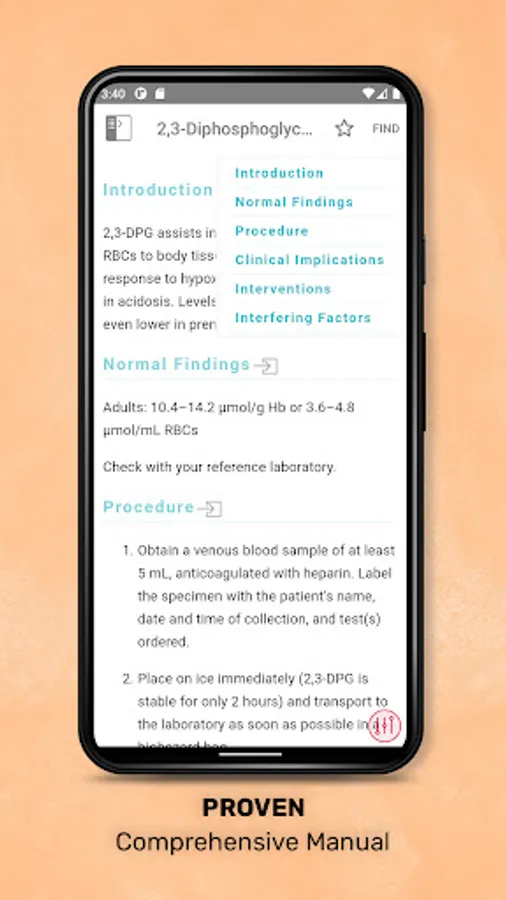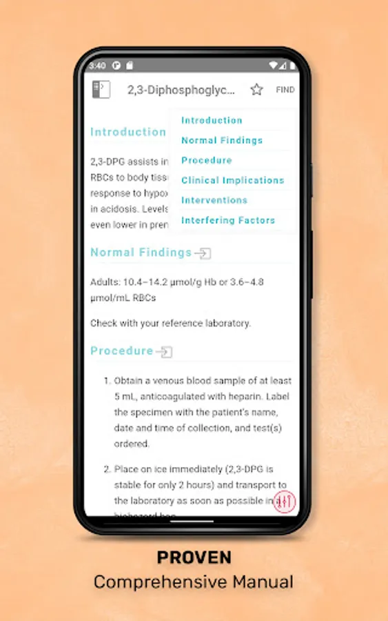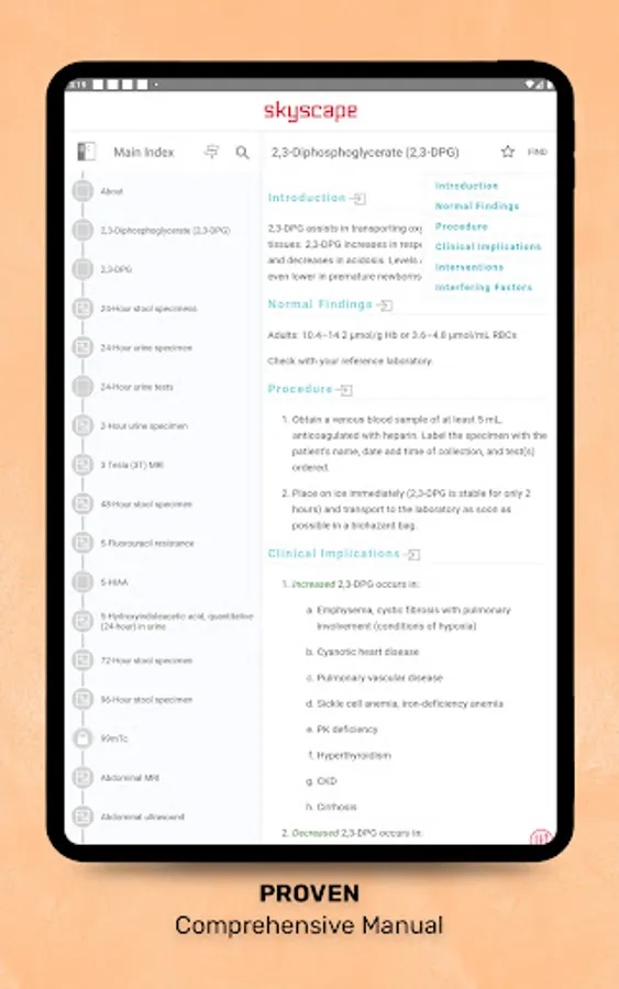 * Straightforward organization helps students easily locate tests by specimen, function, and test type and quickly access appropriate introductory information, reference values, procedures, clinical implications, and interventions.