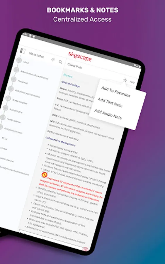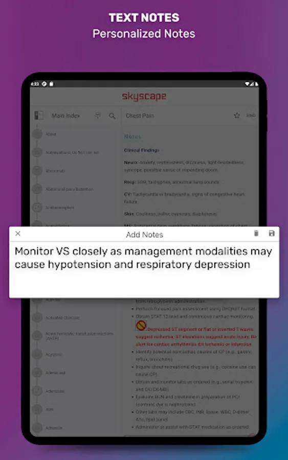 MedSurg Notes: Nurse's Clinical Pocket Guide app provides on-the-spot guidance that helps you identify and treat patients with urgent and common medical-surgical conditions. Each condition is in outline format and delivers all the current information you need to deliver the very best patient care.