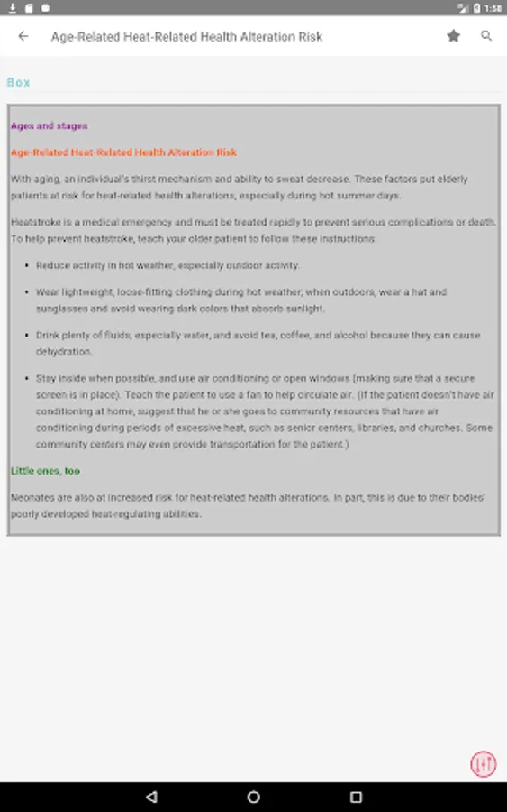 - Ages and stages – age-related changes and how they affect a patient’s health