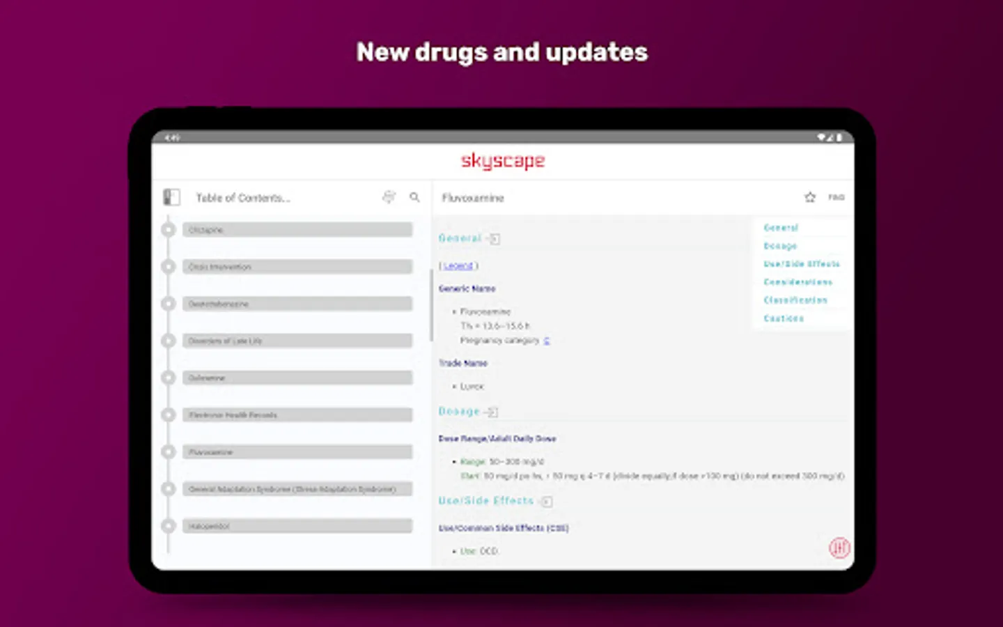 * Several new psychotropics — for tardive dyskinesia, PTSD, treatment-resistant depression, and also a new medication for schizophrenia.