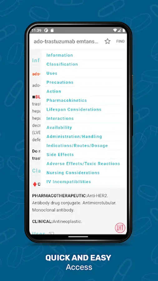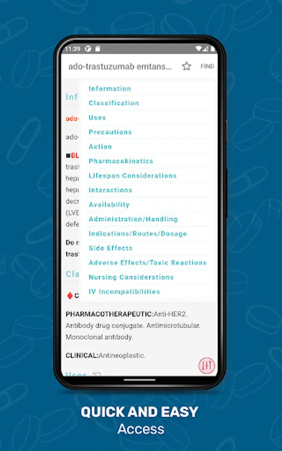 - Drug Classifications section features an overview of actions & uses for drug families.