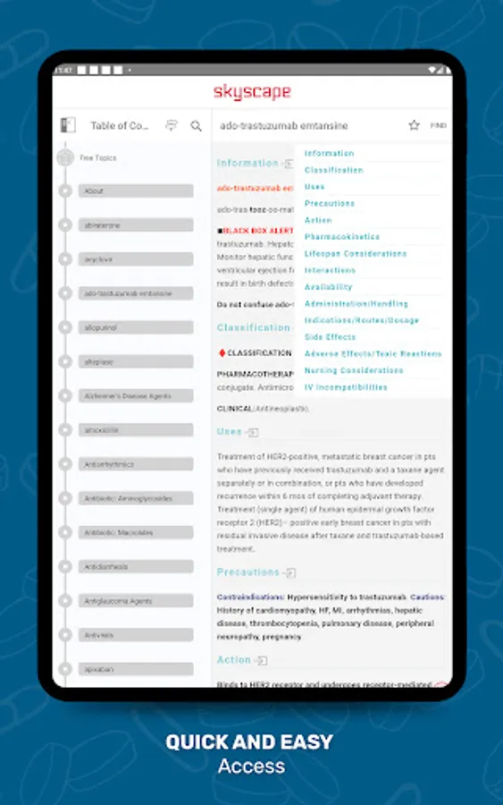 - 1,000+ generic name drugs, encompassing 4,000+ trade name drugs, are organized alphabetically with A-to-Z tabs for quick and easy access.