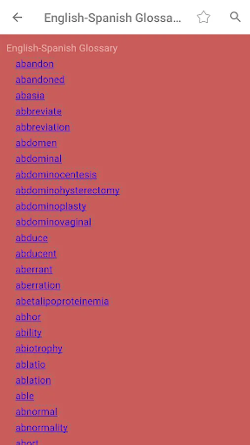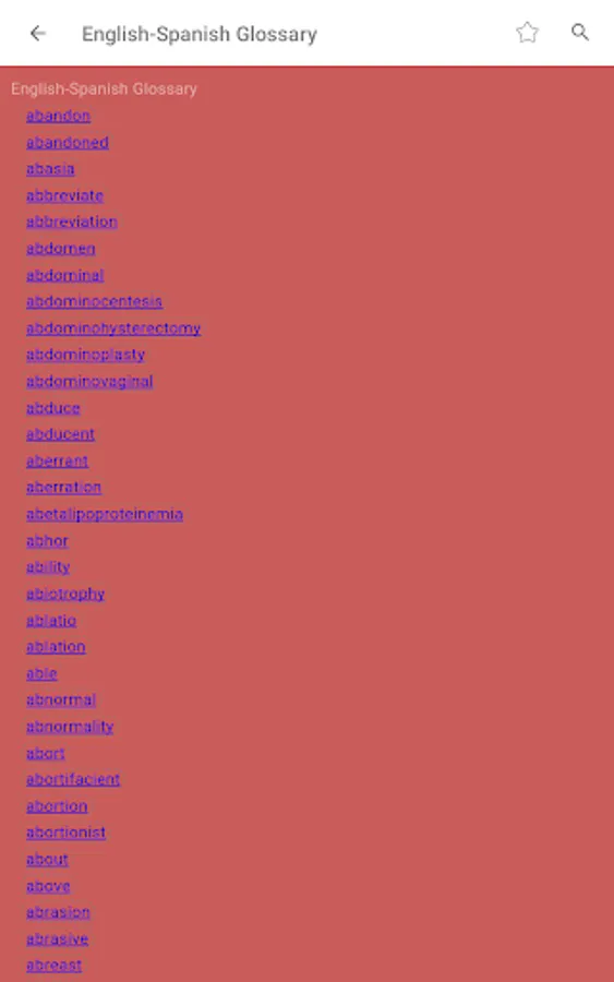 Spanish-English English-Spanish Medical Dictionary provides easy access to nearly 23,000 medical terms, technology-related medical terms, and medical abbreviations, plus definitions, translations, pronunciation, signs and symptoms, patient communication phrases, and much more.
