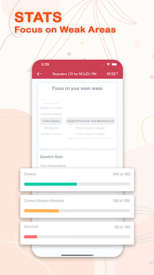 * Stats (View details on topics mastered so you can focus on weak areas)