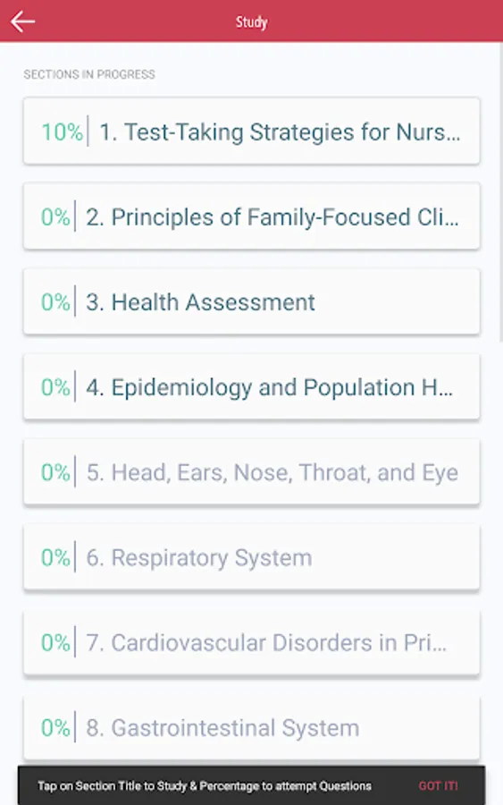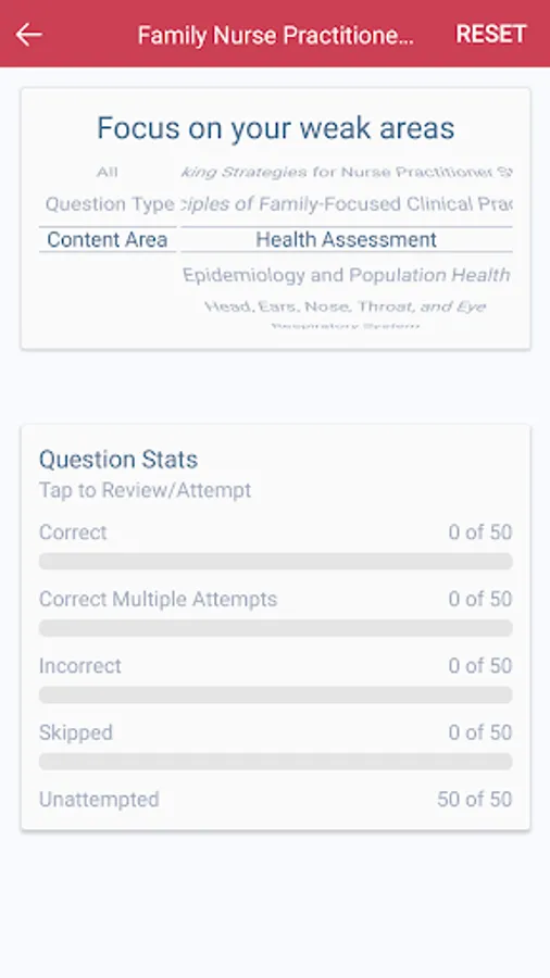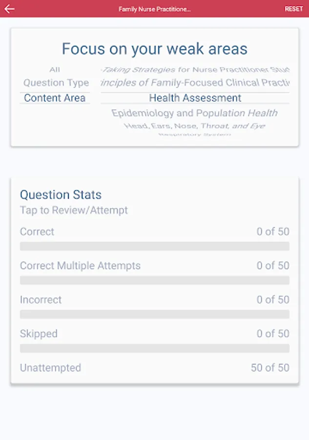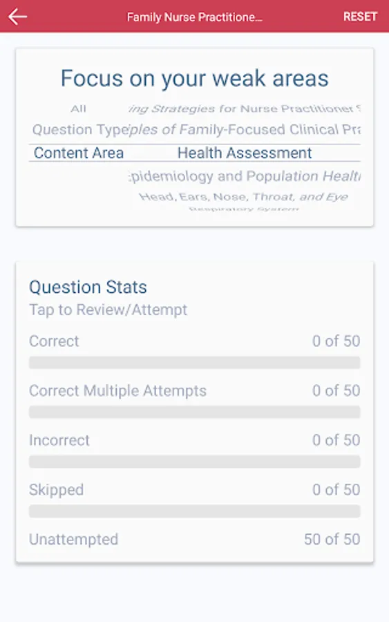 * Stats (View details on topics mastered so you can focus on weak areas)