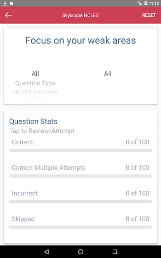 - Stats (View details on topics mastered so you can focus on weak areas)