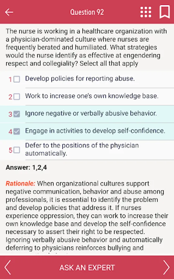 - Study Mode (Attempt a question, see the answer and the rationale)