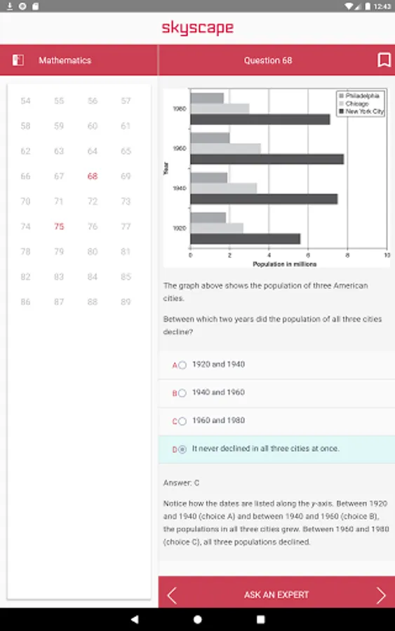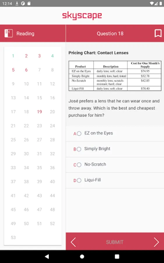 - Bookmarked and Skipped questions feature allows students focus on specific areas