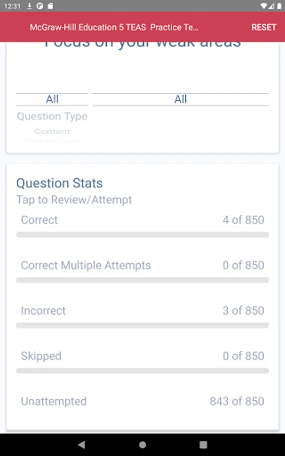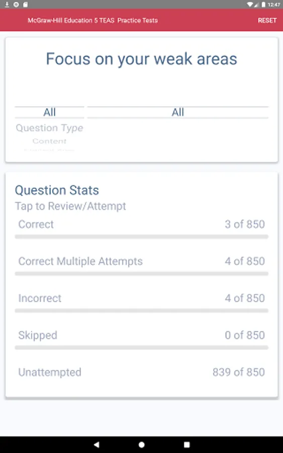 - Stats (View details on topics mastered so you can focus on weak areas)