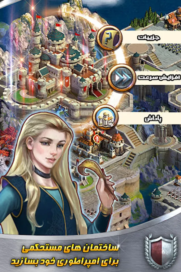 تقویت Strengthen and upgrade the palace, military castle, barracks, hospital and other buildings in the city to be ready for any kind of struggle and adventure.