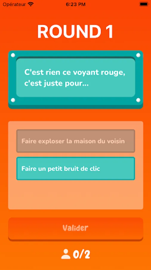 During games of 5 rounds, challenge your friends on their ability to improvise and humor. Each round, a sentence to complete will be proposed. It's up to you to find the funniest beginning or ending in order to earn your friends' vote. Because watch out! You cannot vote for yourself, a vote is earned.