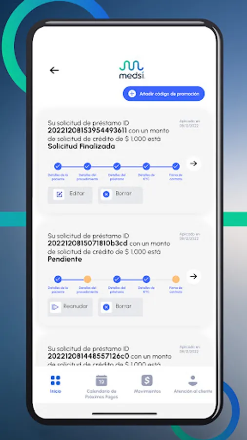 Medsi pone a tu alcance una solución accesible, fácil de usar y flexible, con la que puedes obtener al instante el crédito para tu tratamiento o cirugía. No necesitas una tarjeta de crédito, ni aval.