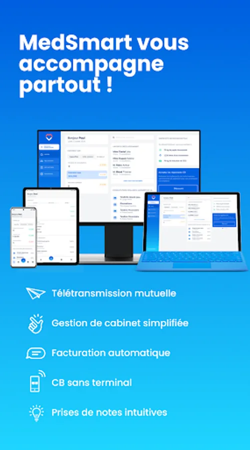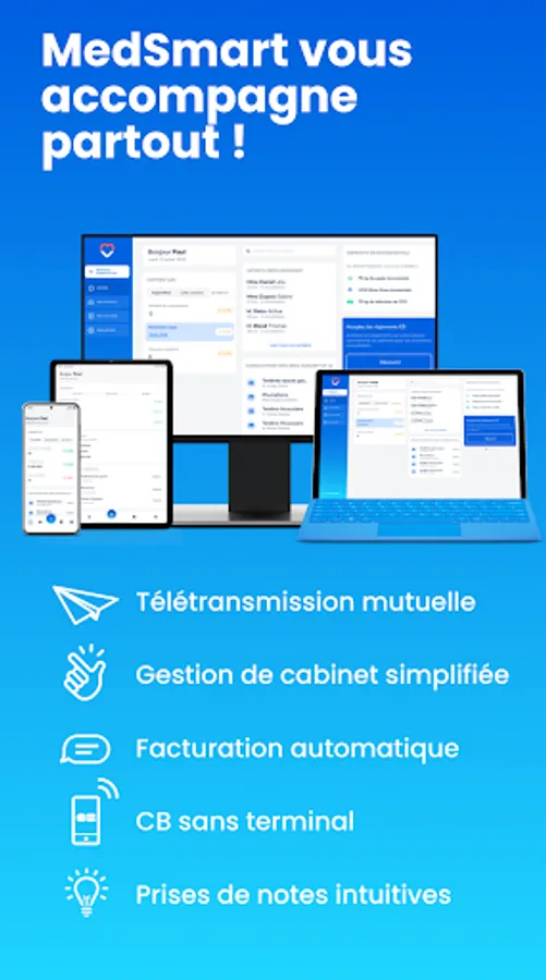 MedSmart has been designed in collaboration with many health practitioners to adapt perfectly to your specialty.