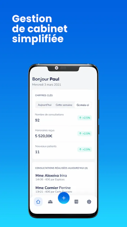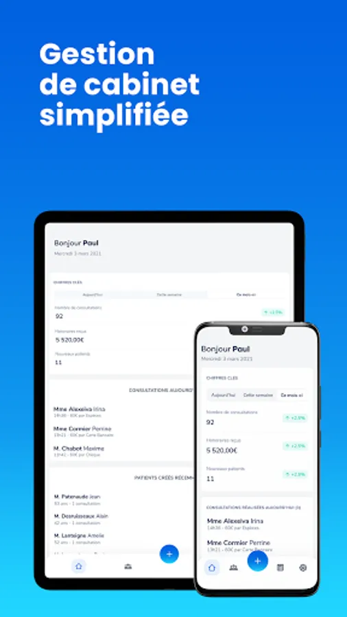 Your personal data and those of your patients are hosted in HDS servers (Health Data Host) certified by the Ministry of Health and located in France, to guarantee you total security and confidentiality of your patients' information.